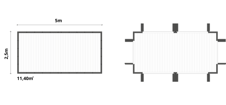 - Stützenfreie Vergrößerung des Raumes auf bis zu 200% durch Kombination mit Modul S auf zwei Seiten bei größerem Platzbedarf